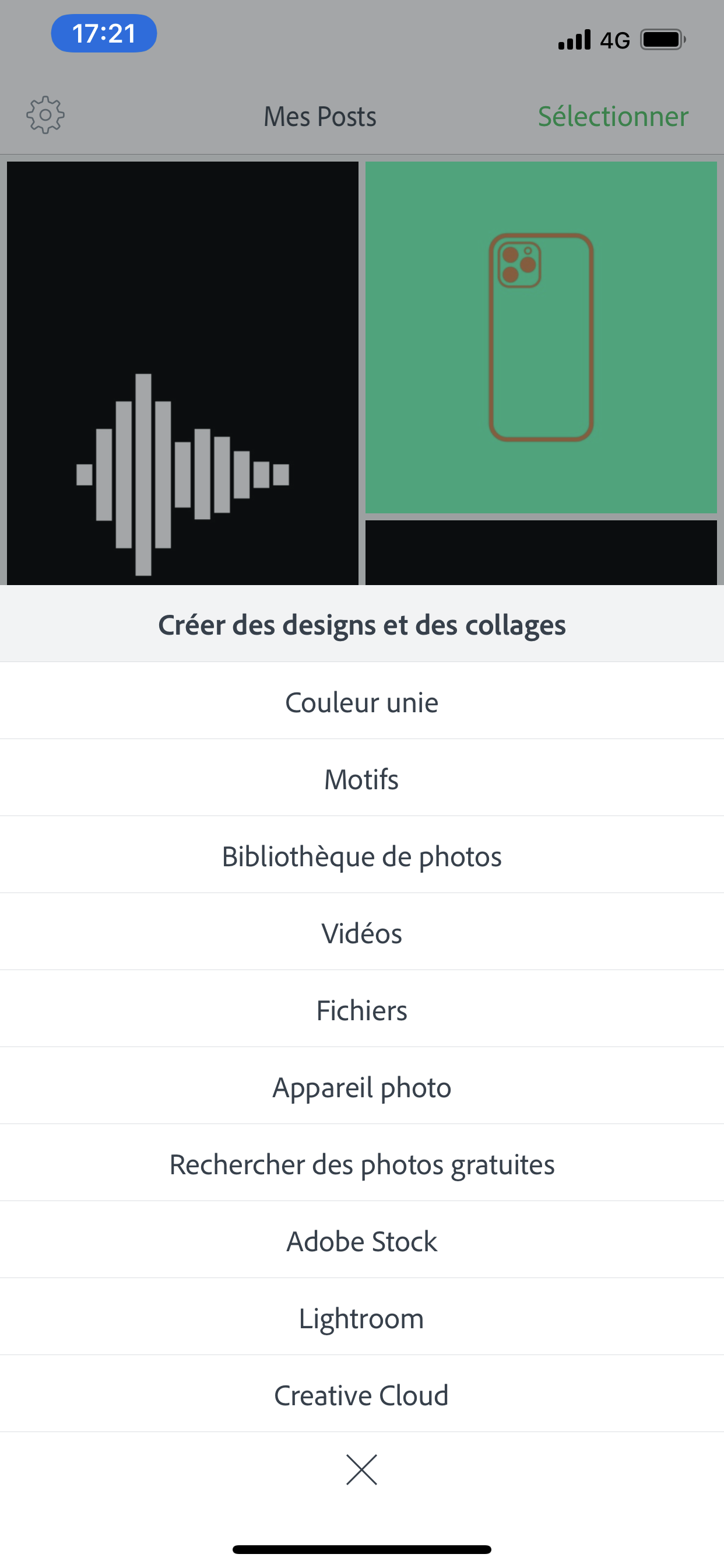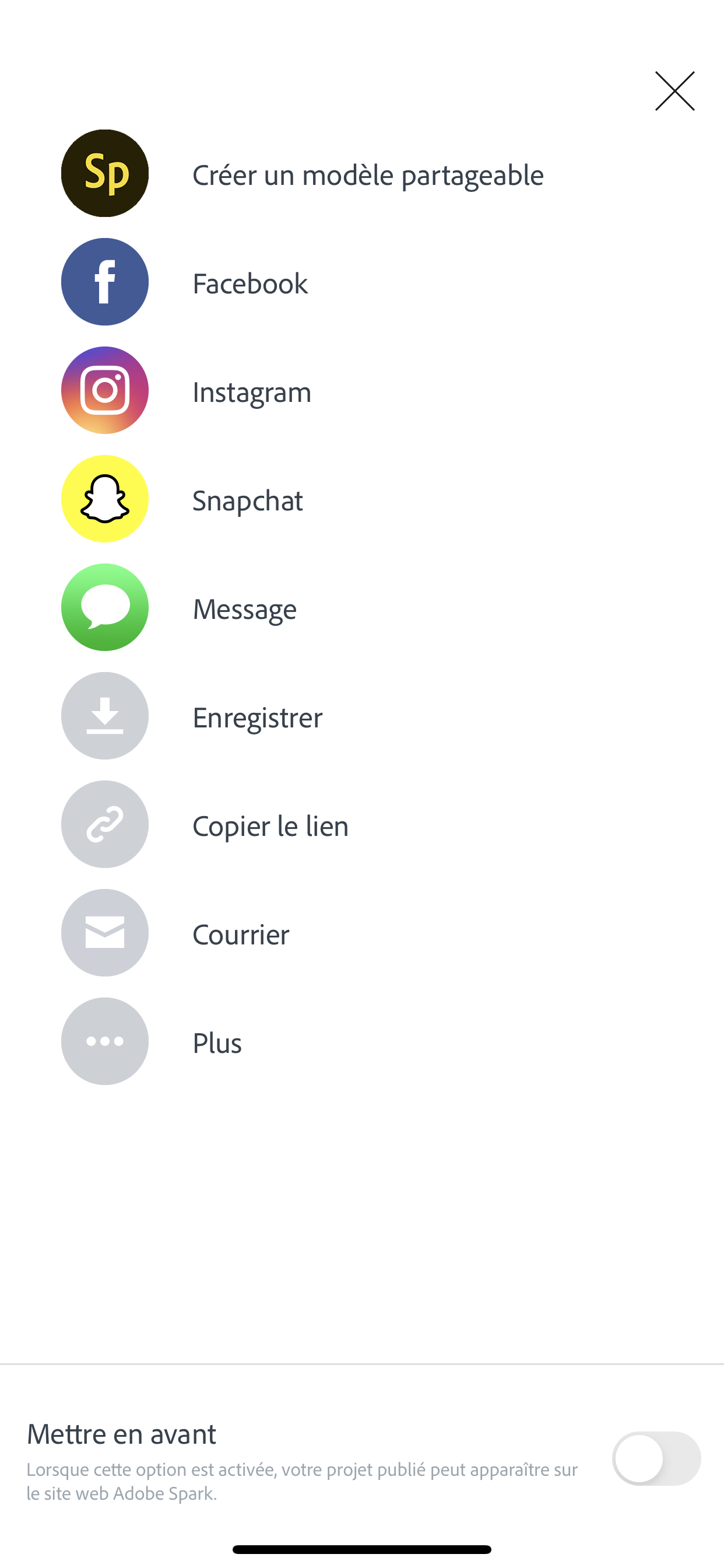 Tout d’abord, rendez-vous dans l’application adobe spark, sur la page d’accueil, créez un nouveau design en appuyant sur le bouton + en bas au centre de la page.