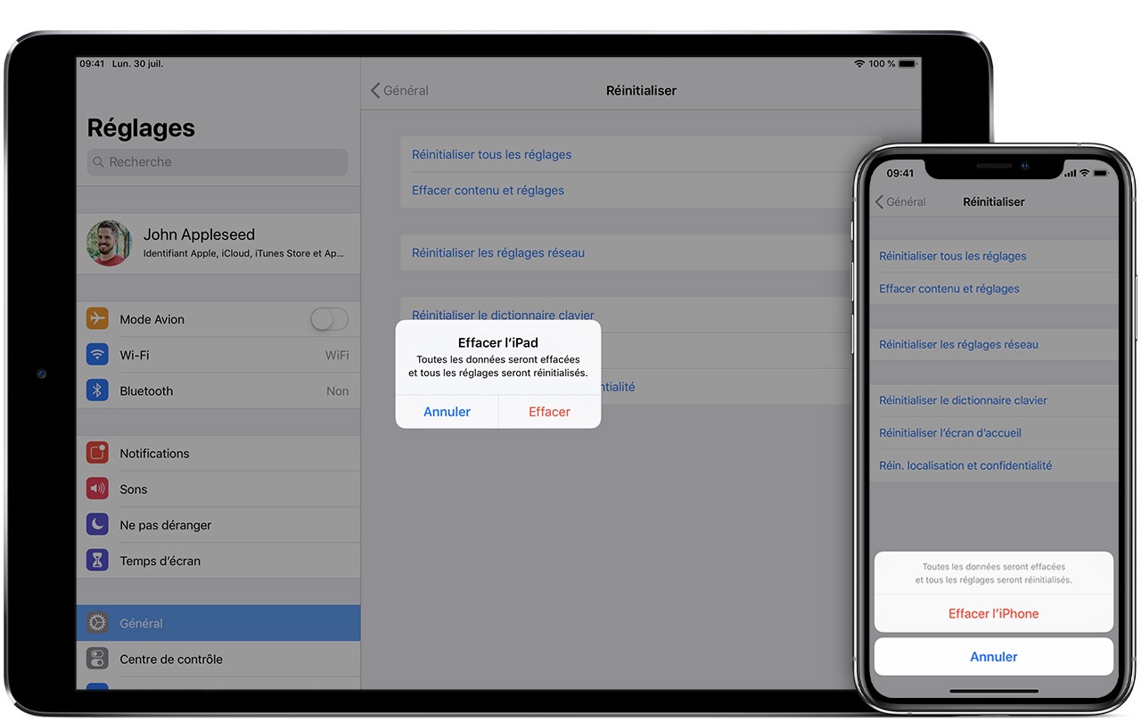 Maintenant que vous avez fait les principales étapes pour sauvegarder vos données personnelles et pour vous déconnecter des services d’Apple sur cet appareil, il ne reste plus qu’à réinitialiser l’appareil pour lui rendre ses réglages d’usine.