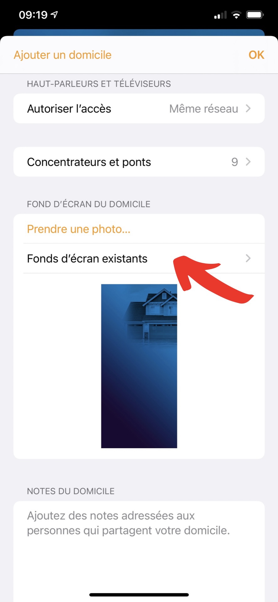 Pour changer le fond d’écran général de l’app maison, la manipulation est exactement la même, sauf qu’au lieu de vous rendre dans réglages des pièces, vous choisirez réglages de maison .