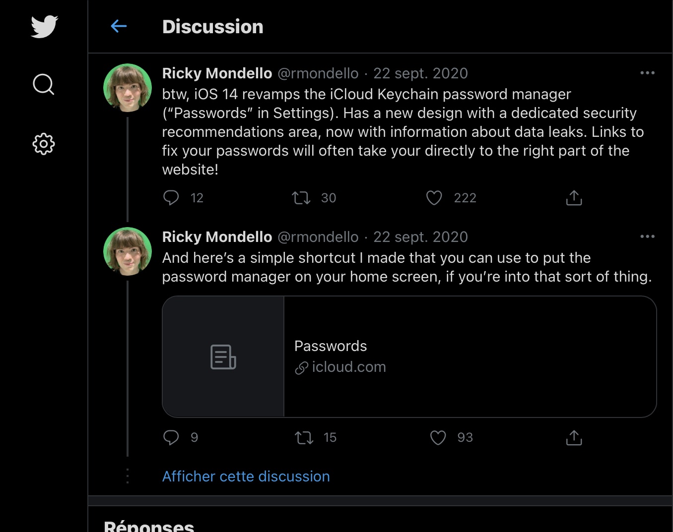Et c’est encore le cas ici car Ricky Mondello, développeur chez Apple , a publié un raccourci qui vous permet très simplement et en une seule manipulation d’avoir accès à vos mots de passe stockés sur votre machine.