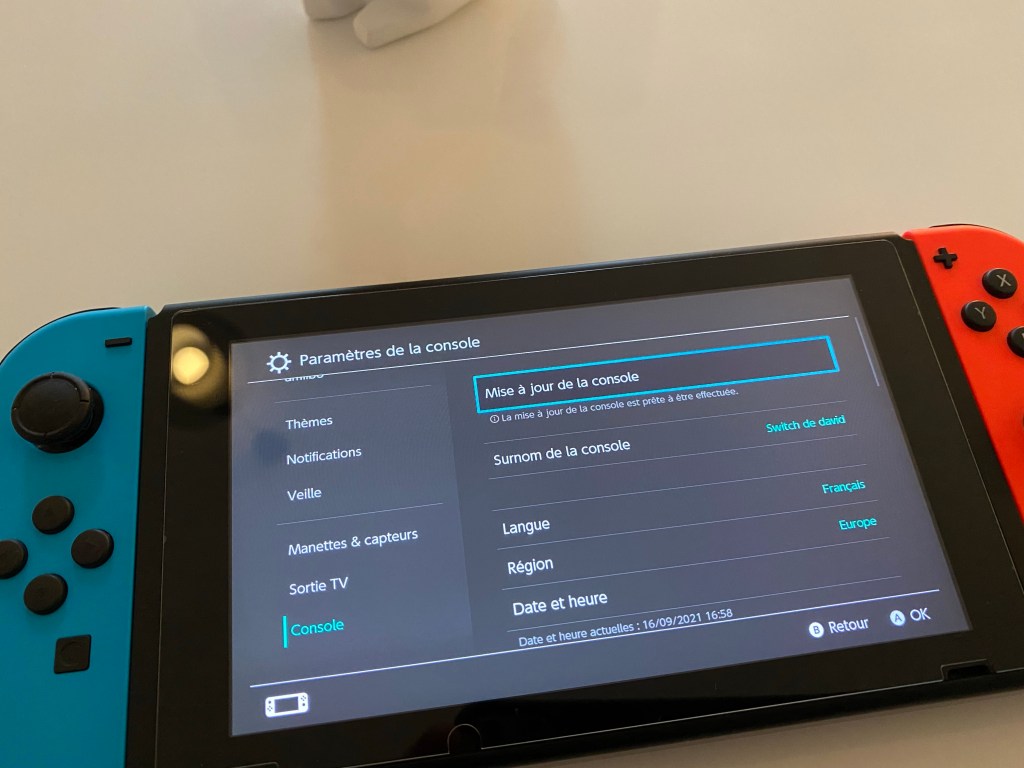 Dans cet onglet console, choisissez la première option, Mise à jour de la console, puis laisser la Nintendo switch se mettre à jour toute seule.
