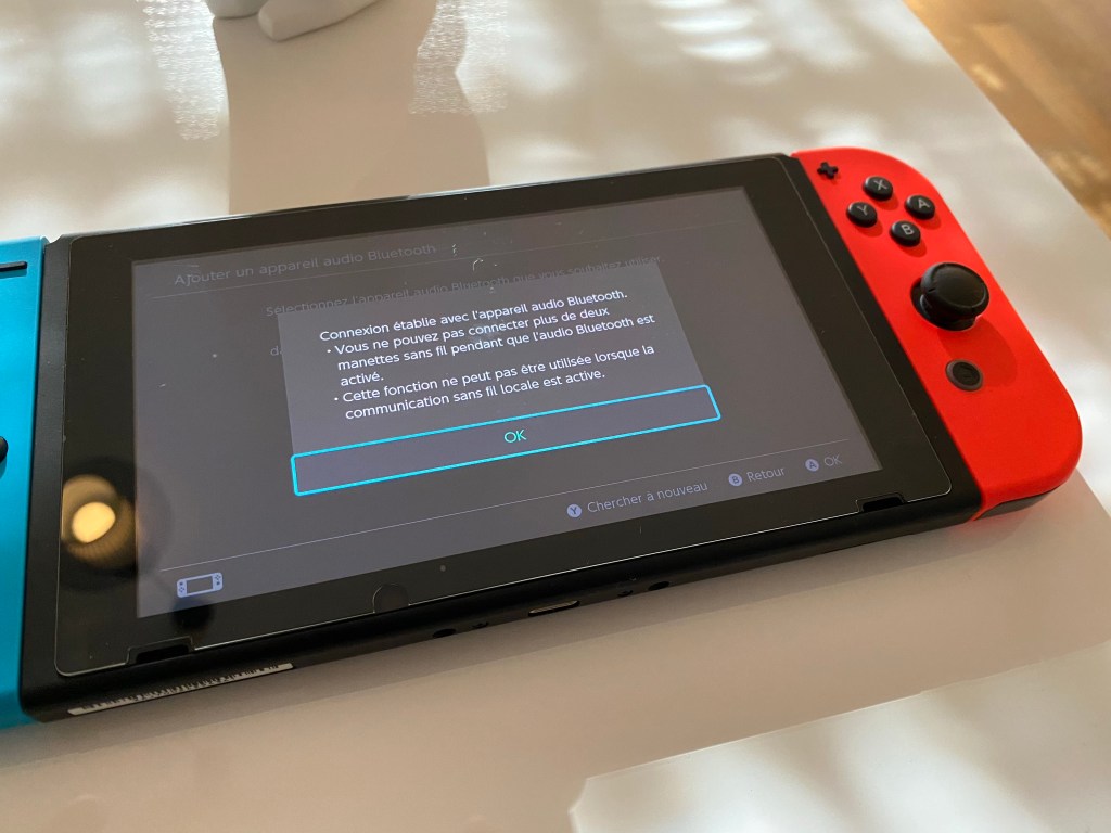Une fois cette operation terminée , ca y est, vos AirPods ou vos AirPods Pro sont connectés nativement en Bluetooth à votre nintendo switch et bien-sûr, sans l’ajout d’un adaptateur externe.