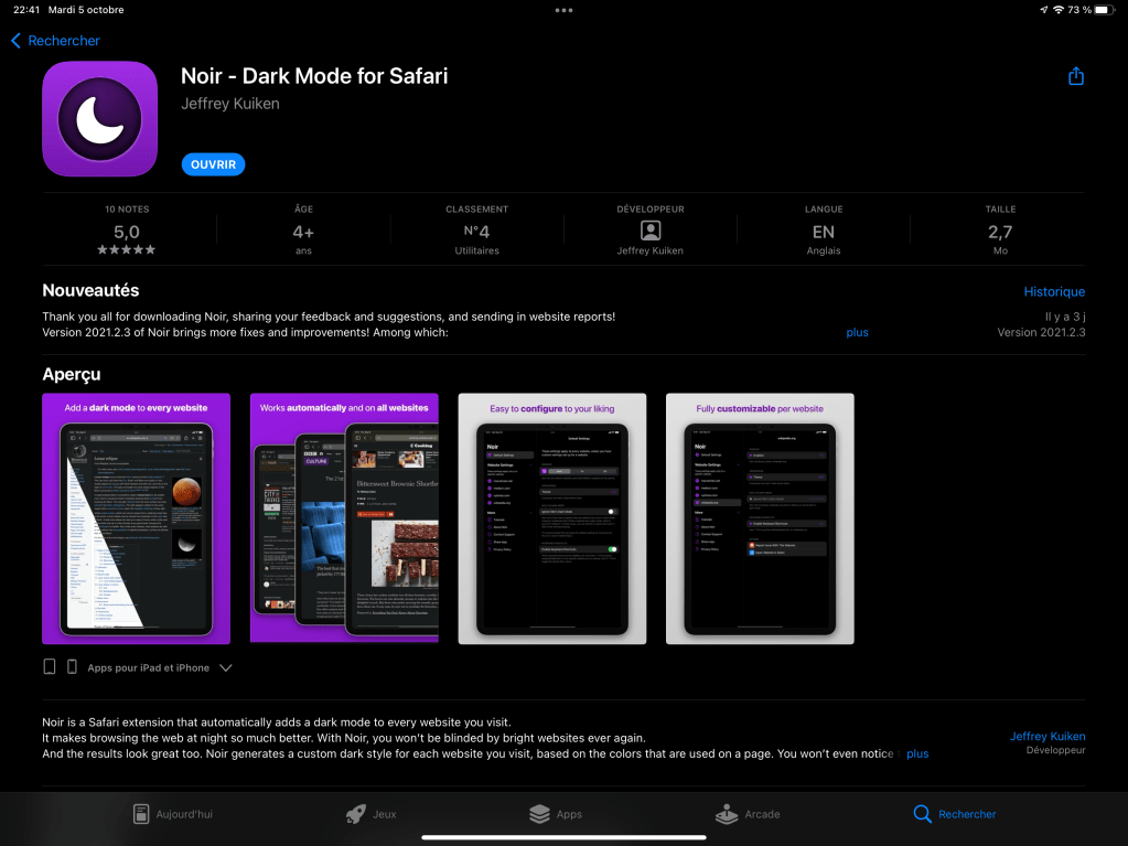 L’erreur est maintenant réparée et j’ai donc décidé de vous partager mon top 5 des meilleurs ( et des plus utiles ) extensions que l’on peut installer sur iOS et iPadOS.