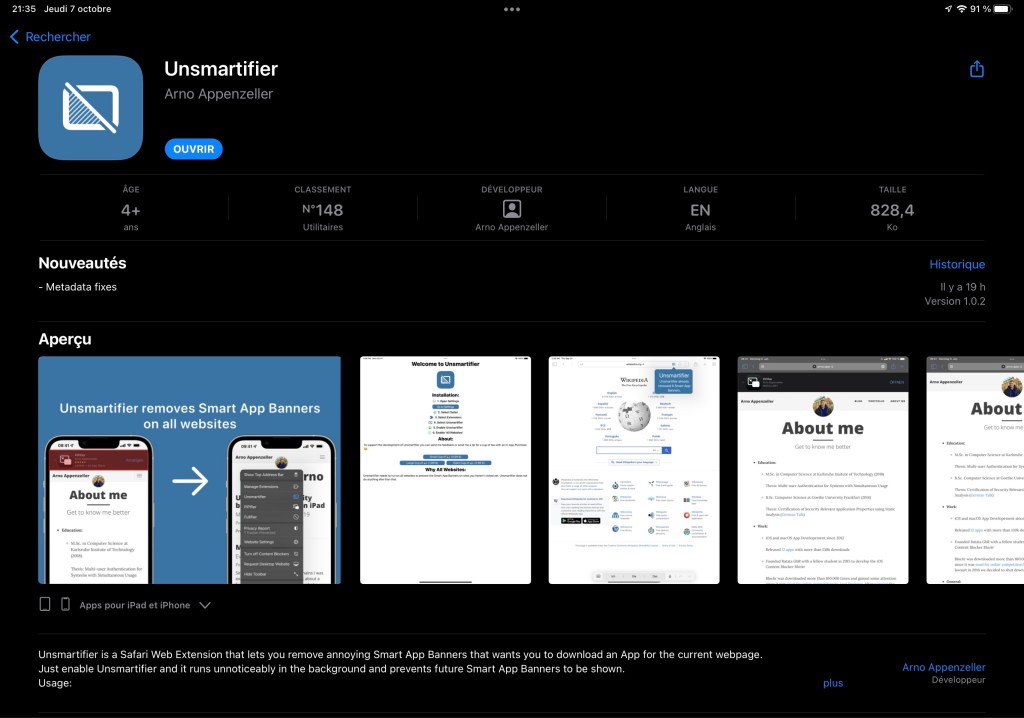 Cette extension vous permet tout simplement de supprimer la bannière qui apparaît en haut d’une page web et qui vous pousse à télécharger une application adossée au dit site web.