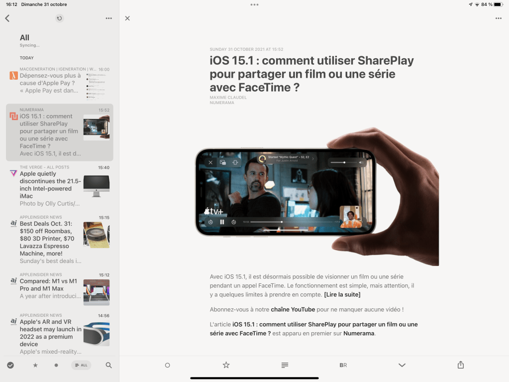 Je n’utilise que cette application dans laquelle je centralise l’essentiel de mes flux RSS pour ne pas avoir à jongler entre plusieurs applications à chaque fois .