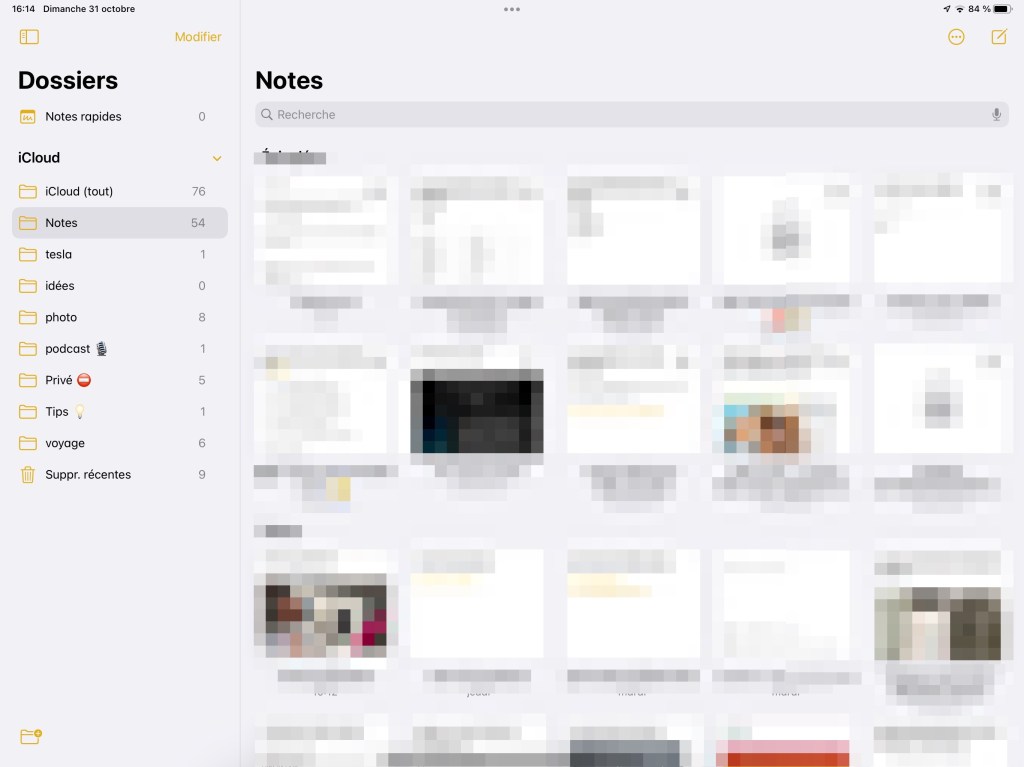 Deuxième application présente dans mon dock, l’application NOTE, application native d’Apple ( j’utilise majoritairement des applications natives car elles sont beaucoup mieux supportées par l’OS).