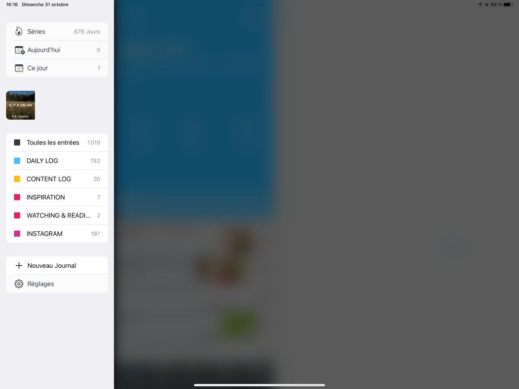Une application que j’utilise vraiment tous les jours pour le coup depuis plus de deux ans, l’application DAY ONE qui me sert d’application de journaling, dans laquelle je crée une entrée chaque soir par l’intermédiaire de texte, d’enregistrement audio ou même d’une courte vidéo.