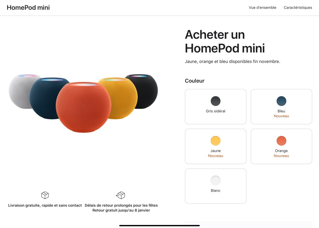 Ce produit, c’est le HomePod mini qui existe maintenant et depuis très peu de temps en 5 couleurs.