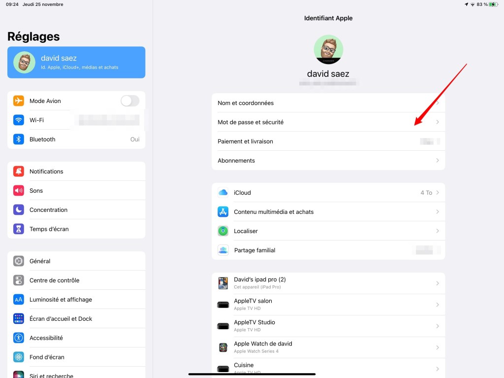 Pour commencer , il faudra vous rendre dans la section AppleID de votre iPhone ou bien de votre iPad.