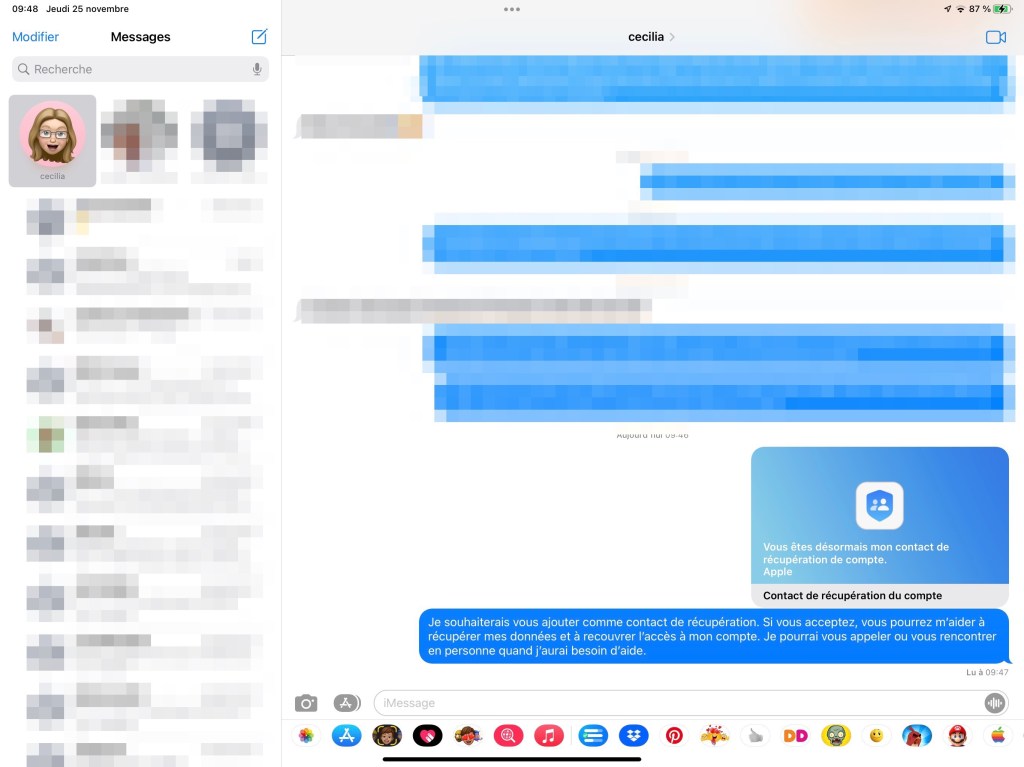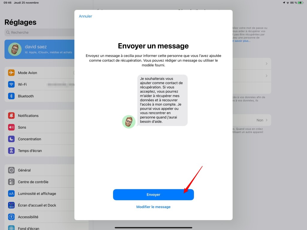 Sachez qu’Apple vous propose un message type mais que vous pouvez très bien modifier ce message pour le rendre plus comprehensible si votre personne de confiance n’est pas familière avec la technologie.