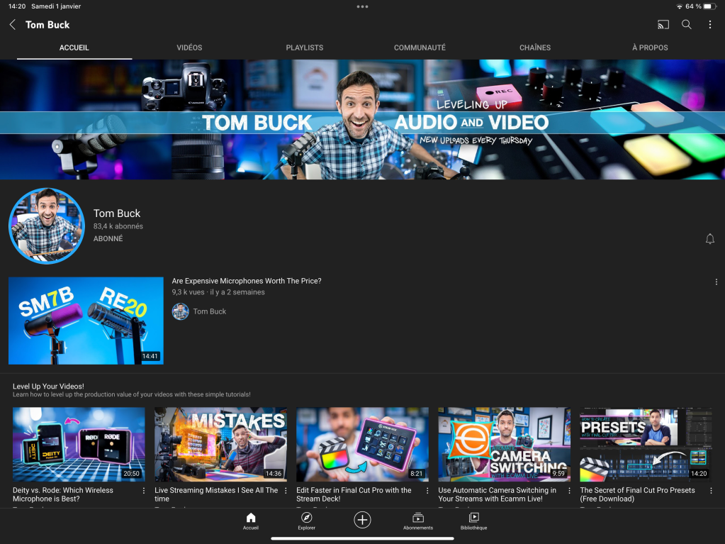 La chaine de Tom buck, spécialisé entre autre, dans l’audio. Si vous faites du podcast, comme moi, ou bien même du streaming, vous apprendrez énormément de choses sur cette chaîne aussi bien en terme de matériel qu’en terme de réglages pour obtenir un bien meilleur son.