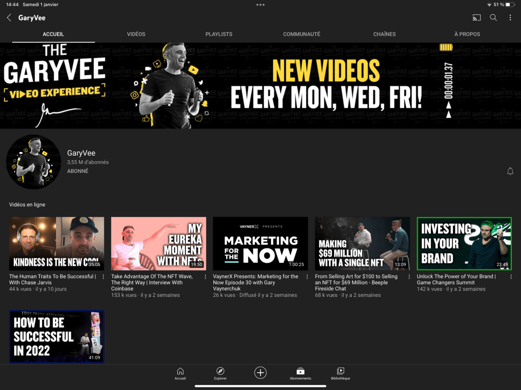 Et pour terminer, certainement le pape de la création de contenu, je ne sais même pas comment vous expliquer ce que renferme cette chaine, mais nul doute que si vous êtes intéressé par le web, la création de contenu et tout un tas d’autres sujets qui touchent au monde d’internet, la chaine de GARYVEE sera une mine d’or pour vous.