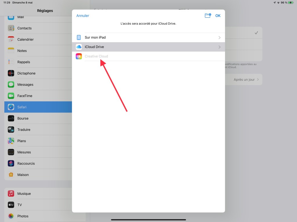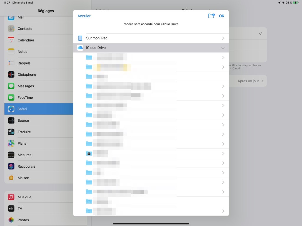 – Choisissez n’importe quel dossier dans iCloud Drive ou Sur mon iphone et touchez Ok.
