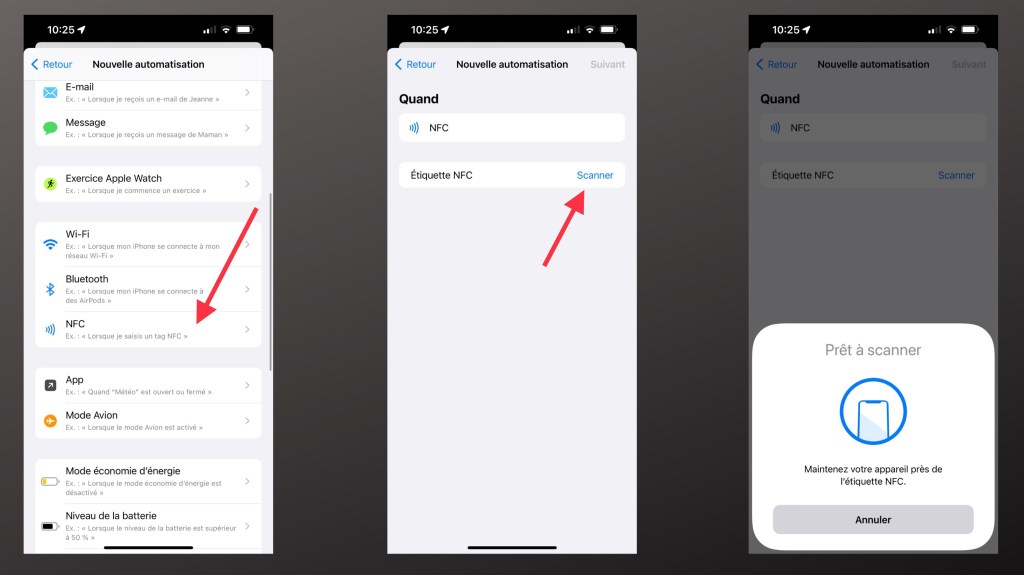 – placez votre tag NFC sur une surface plane et placez votre iPhone juste au-dessus, puis cliquez sur Scanner
