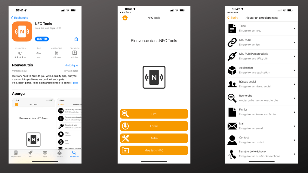 La deuxième solution utilise une application que vous trouverez facilement sur l’AppStore qui se nomme NFC Tools