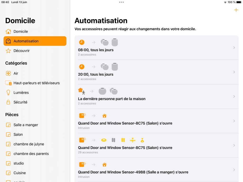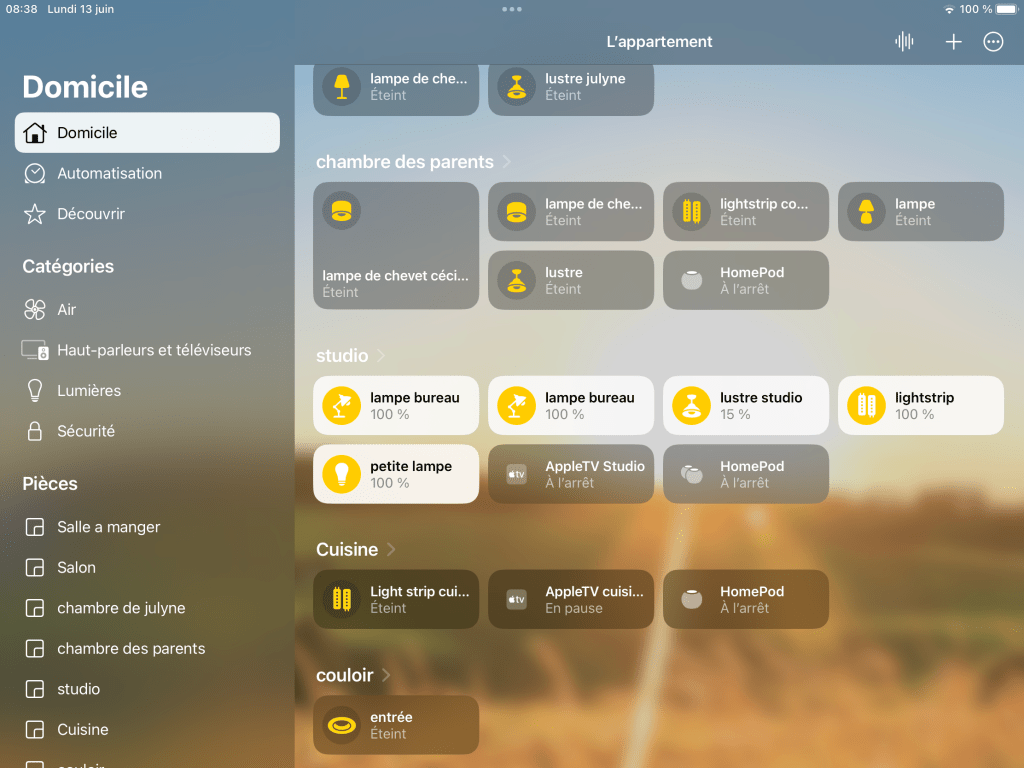 Et c’est pareil pour l’ensemble des pièces de la maison, Apple a enlevé la page ou l’on pouvait voir chaque pièce une par une, maintenant, tout est sur la page principale et vous pouvez les organiser selon l’importance que vous leurs donner.
