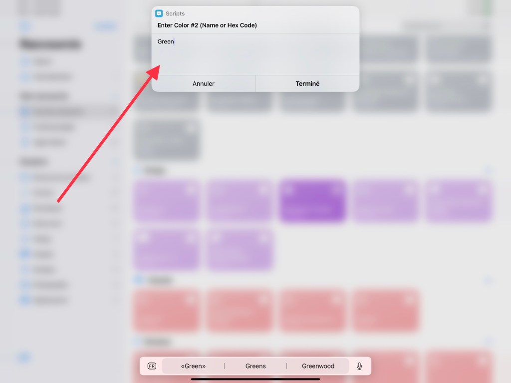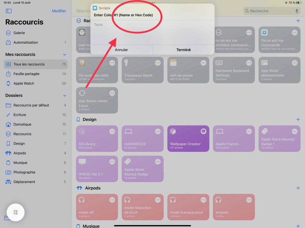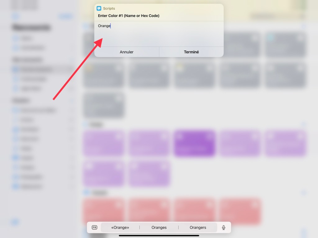 Chose à savoir : les couleurs doivent être écrites en anglais pour que le raccourci les comprennent correctement