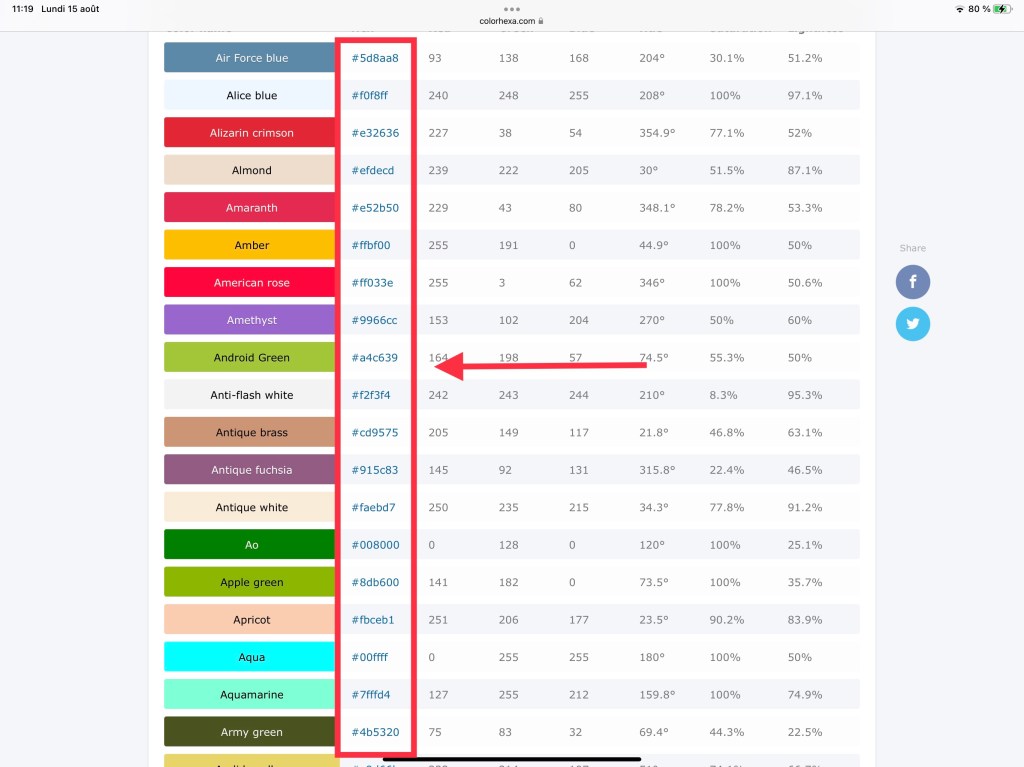 Le code HEX pour faire au plus simple vous donne accès à une multitude de couleurs différentes auxquelles vous n’auriez peut-être pas pensé et il existe tout un tas de sites internet qui regroupent ces différents codes.