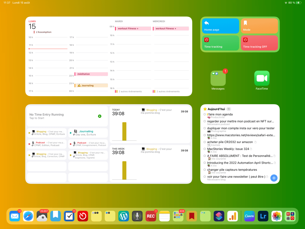 Et j’essaie autant que possible d’accorder le tout quand je sors. La coque d’une couleur, le bracelet de l’Apple Watch qui s’y rapporte et autant que possible, un fond d’écran de la même couleur.