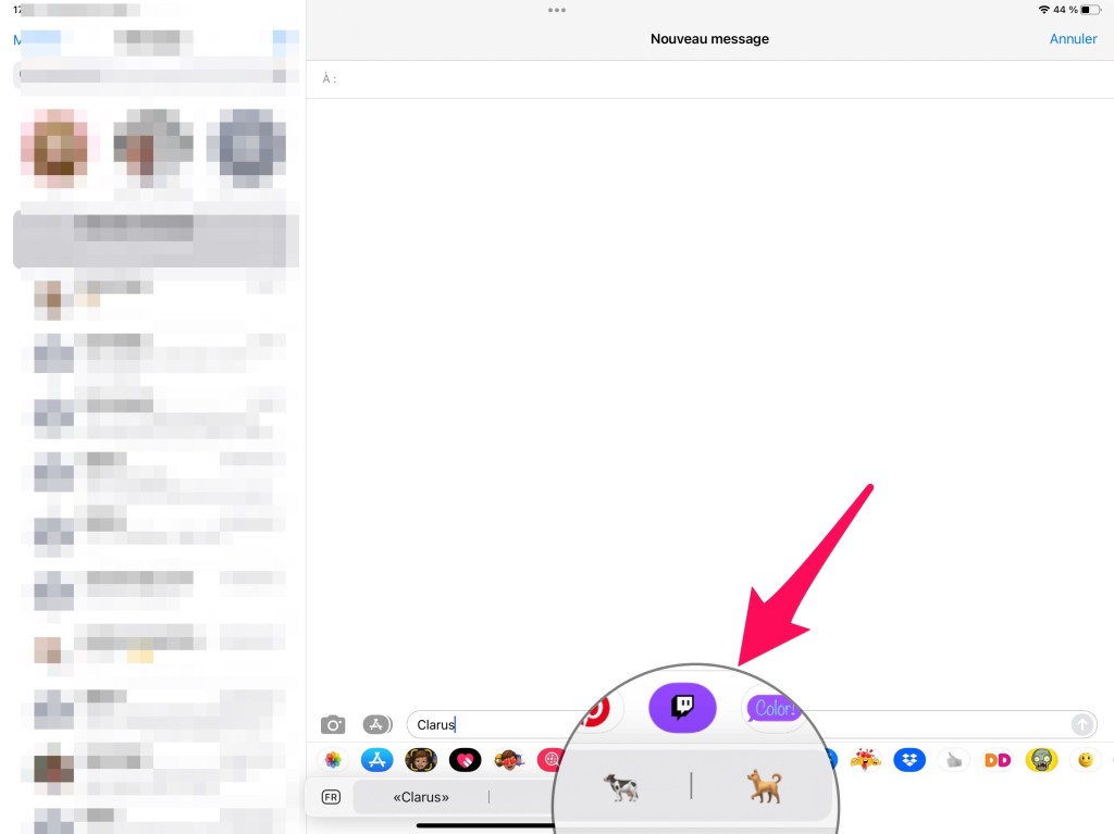 En effet, si sur votre iPhone et sur votre ipad, vous vous rendez dans l’application Messages et que dans le champ d’écriture vous tapez Clarus, le système vous proposera alors un emoji chien suivi de celui de la vache.