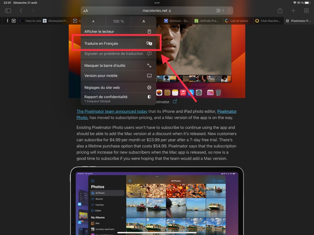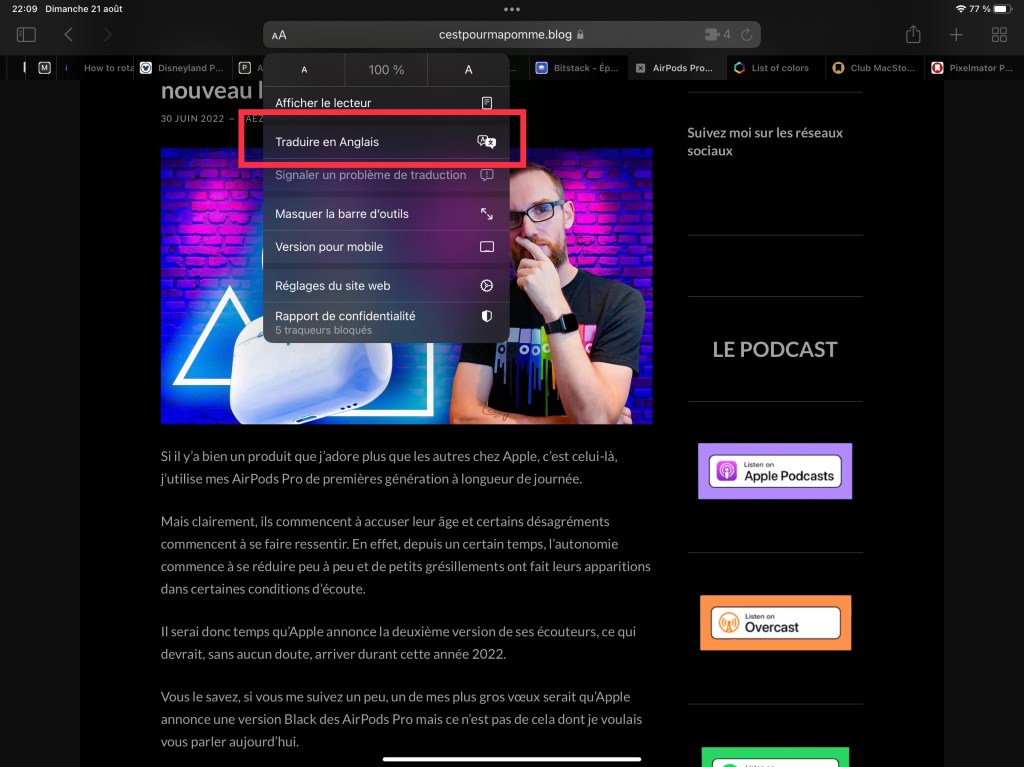 Je me suis rendu compte, il y’a encore très peu de temps que certaines personnes de mon entourage ne savaient pas comment traduire un article directement depuis Safari. Ils ne savaient même pas que cette possibilité était offerte depuis pas mal de temps ( depuis iOS 14 en fait ).