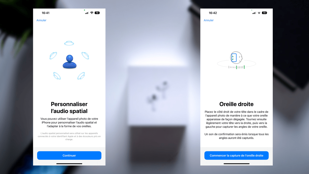 Deuxième chose qu’Apple a amené pour améliorer l’expérience du son spatial, un nouveau paramètre qui va vous permettre de faire un scan de vos oreilles à l’aide de votre iPhone pour personnaliser encore plus finement votre écoute et de la rendre encore plus immersive.
