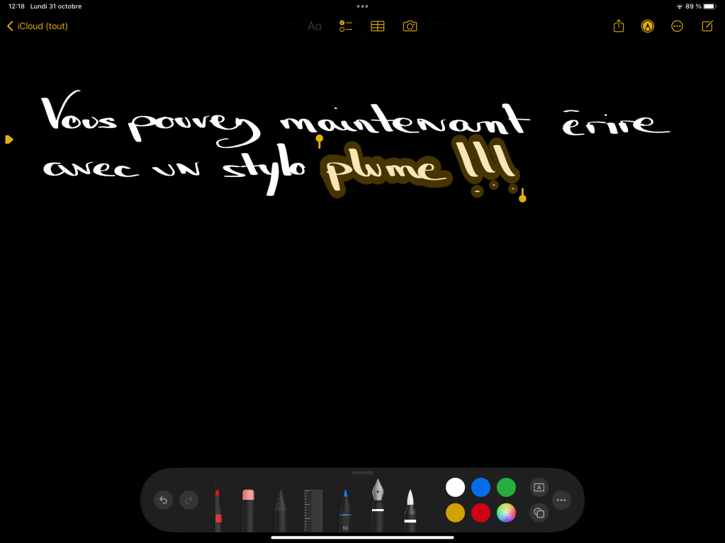 Lorsque que vous vous rendez sur l’application Notes et que vous utilisez l’Apple pencil, vous arrivez sur cette interface.