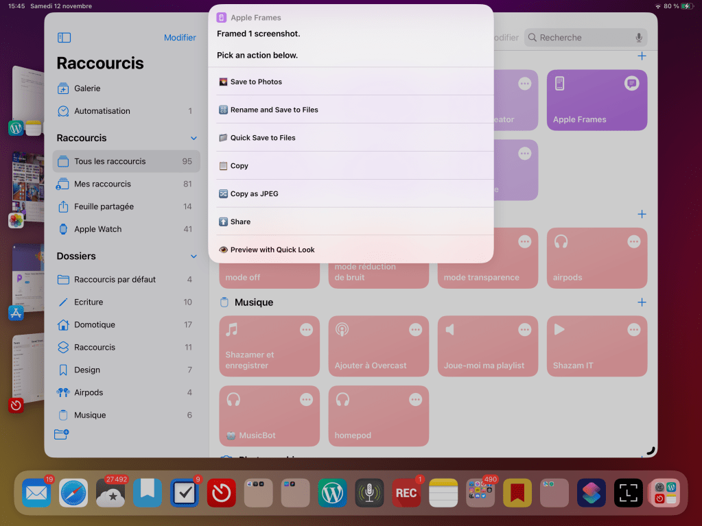 Une des dernières choses importantes à savoir, est que à l’installation du raccourci, il vous sera demandé d’accepter l’installation d’un fichier dans l’application fichier de votre appareil, fichier qui contient la totalité des frames nécessaire au bon fonctionnement du raccourci.