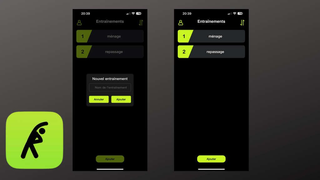 En dehors des activités d’entretien de votre maison, vous pourrez bien- sûr ajouter de véritables activités sportives qui ne sont pas disponibles en natif comme des séries de pompes ou tout un tas d’autres choses.