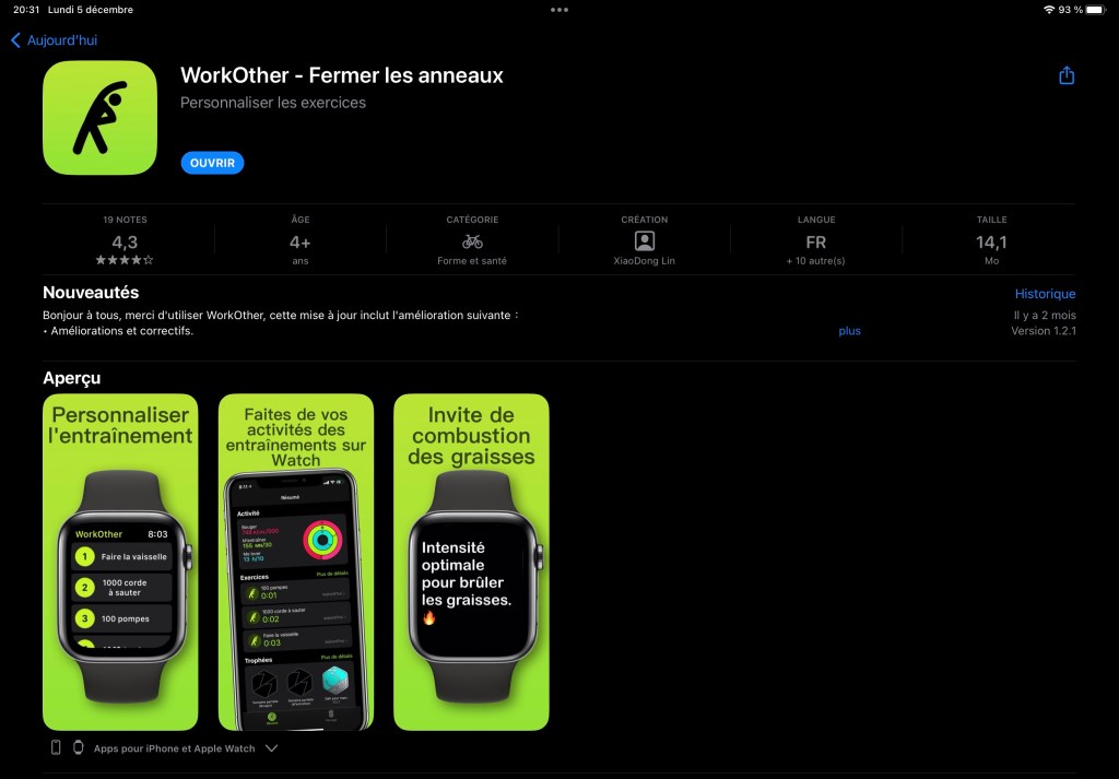 Aujourd’hui, je vais donc vous présenter une application qui va vous permettre de combler ce manque de l’Apple Watch, de rajouter des activités que vous aurez défini en fonction de vos besoins mais qui enregistrera toutes ces données dans l’application Activité native de votre iPhone.