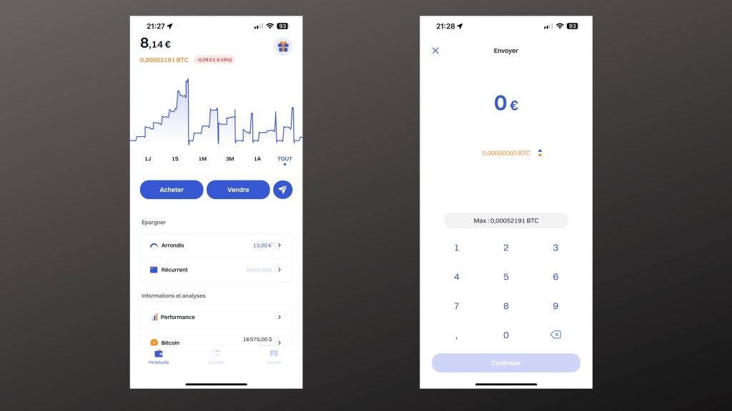 Soit vous vendez vos bitcoins et vous récupérez l’équivalent en euros sur le compte bancaire que vous avez renseigné dans l’application à votre inscription, soit vous transférez l’ensemble de ces bitcoins sur un wallet externe.
