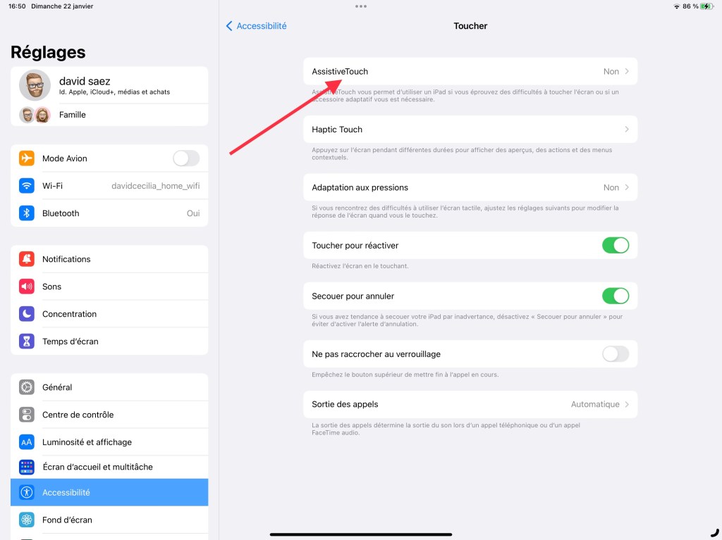 - Ouvrez l’ application Paramètres et accédez à Accessibilité > toucher > AssistiveTouch .
