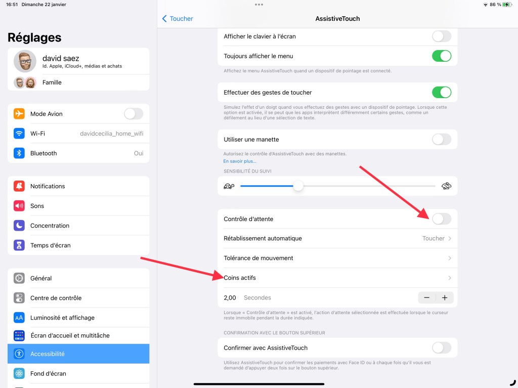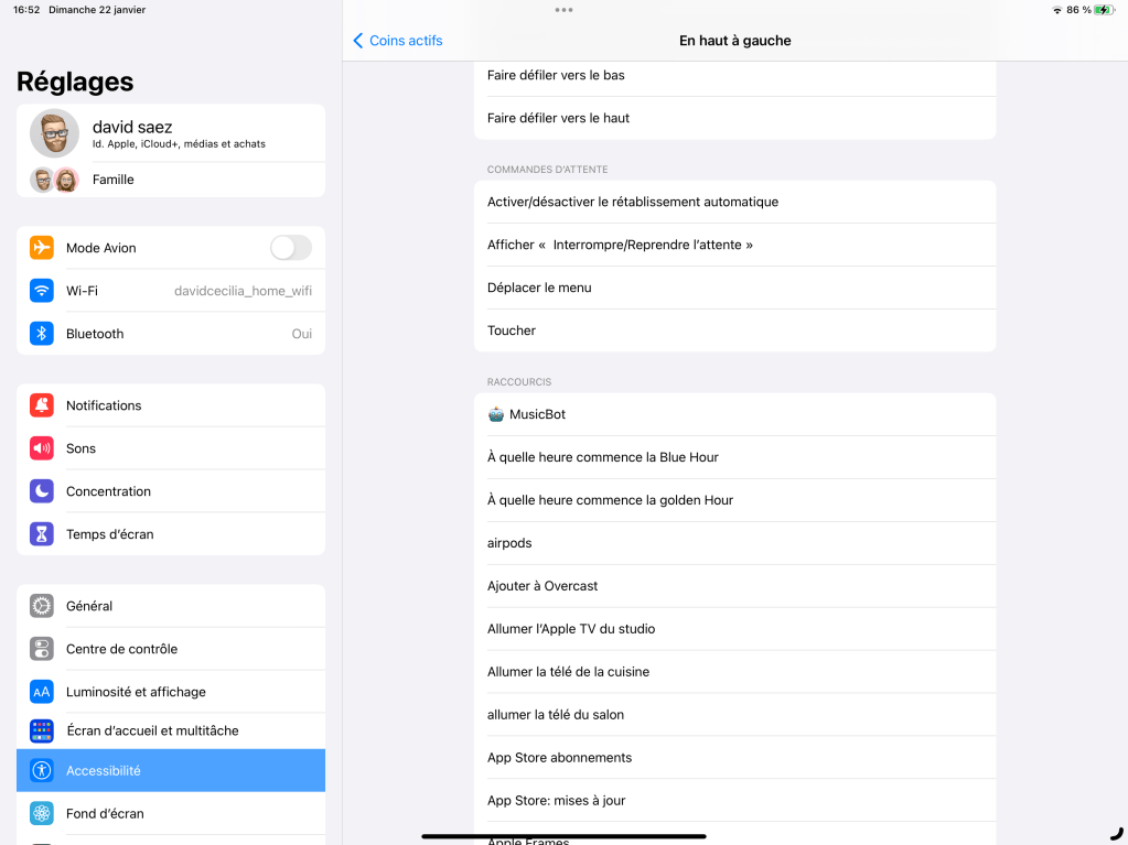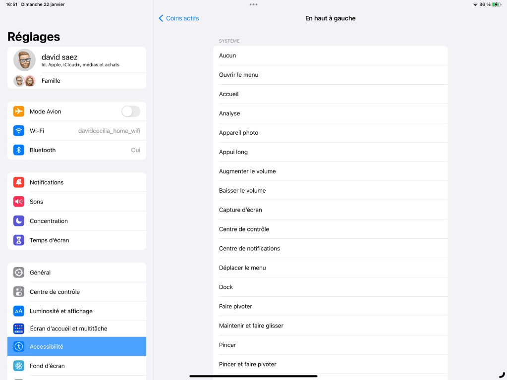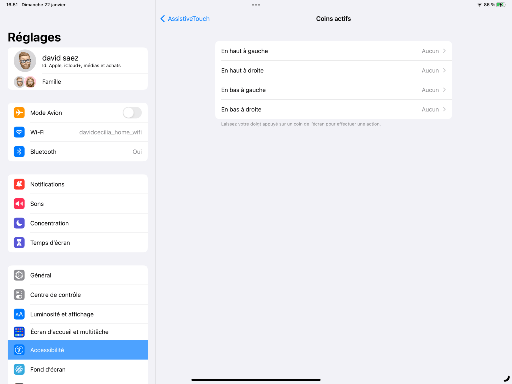 Une fois arrivé à cette partie vous n’avez plus qu’à configurer chaque coins de votre iPad avec la fonction qui vous intéresse.