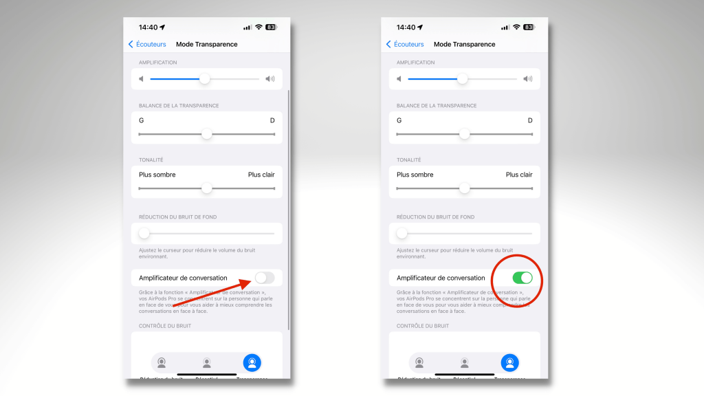C’est une fonction d’accessibilité des écouteurs conçue au départ pour les personnes malentendantes mais que vous pouvez aussi utiliser dans des endroits extrêmement bruyants lorsque vous avez une conversation en face à face avec quelqu’un.