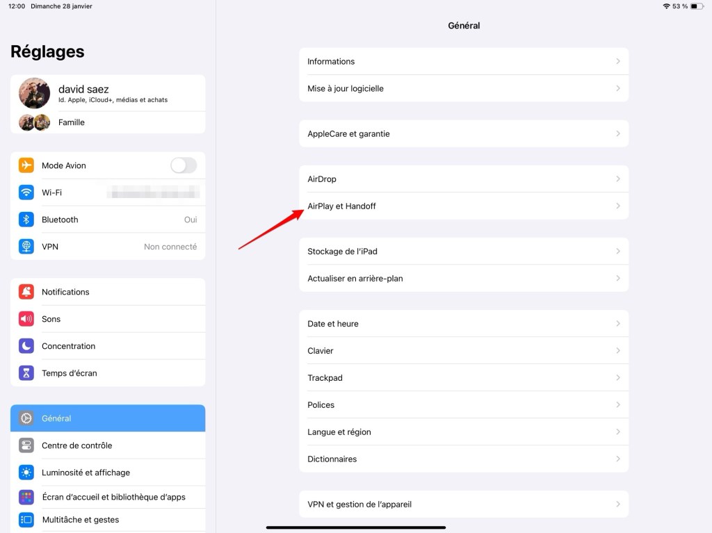 En effet, en cliquant sur le nom de votre iPad, vous pouvez choisir comment configurer ce nouvel écran.