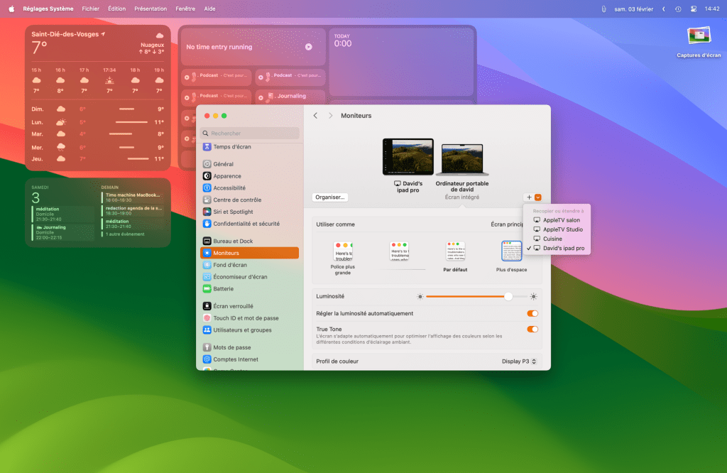 En cliquant sur « Utilisez comme «, vous aurez alors le choix d’utiliser votre iPad comme moniteur principal ou de faire une simple recopie d’écran de votre Mac.