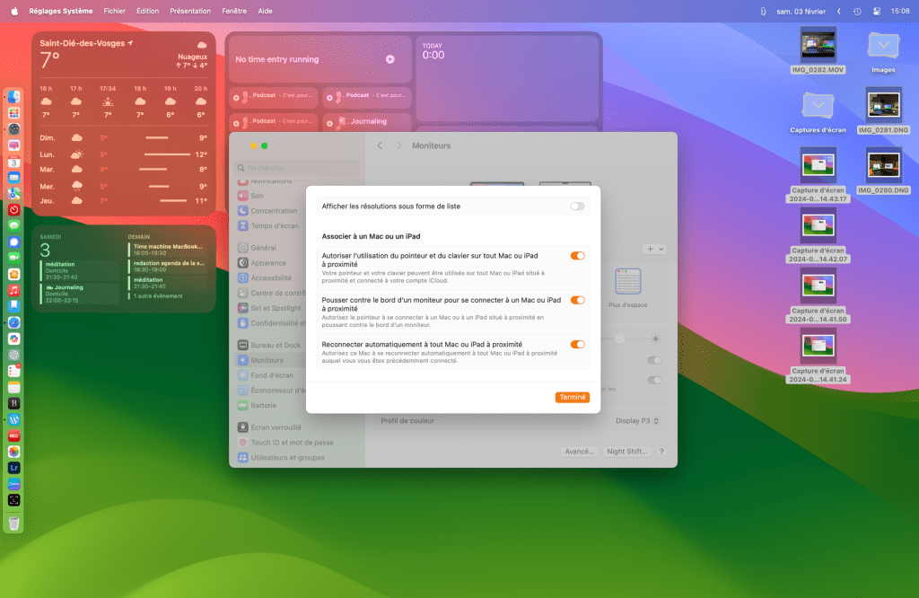 – Commencez par vous rendre dans le menu pomme de votre ordinateur, puis dans Réglages Systèmes, puis cliquez sur moniteurs dans la barre latérale.