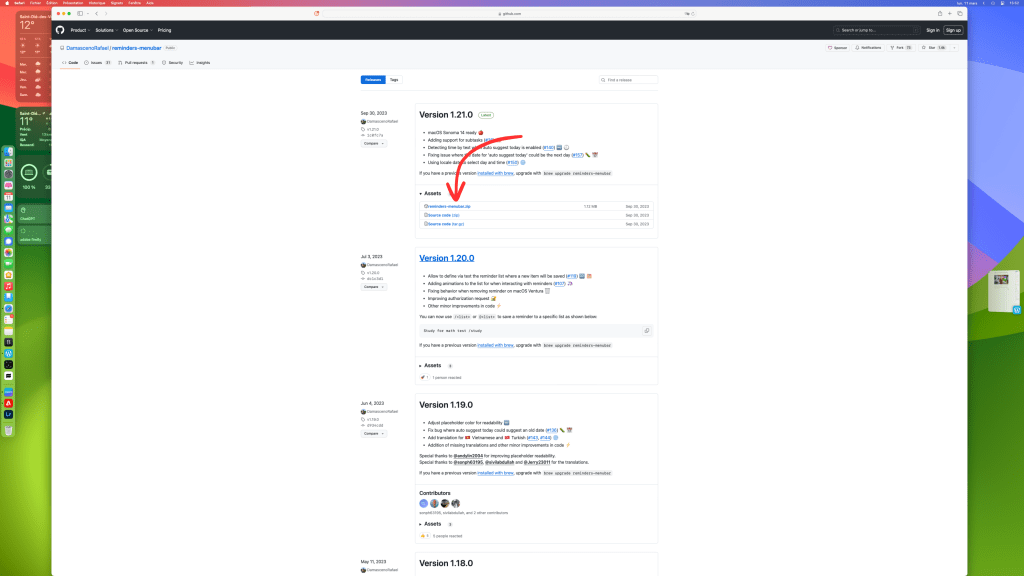 Puis dans les liens cliquables sous cette version, choisissez reminders-menubar.zip , cliquez dessus pour télécharger le fichier Zip de l’application.