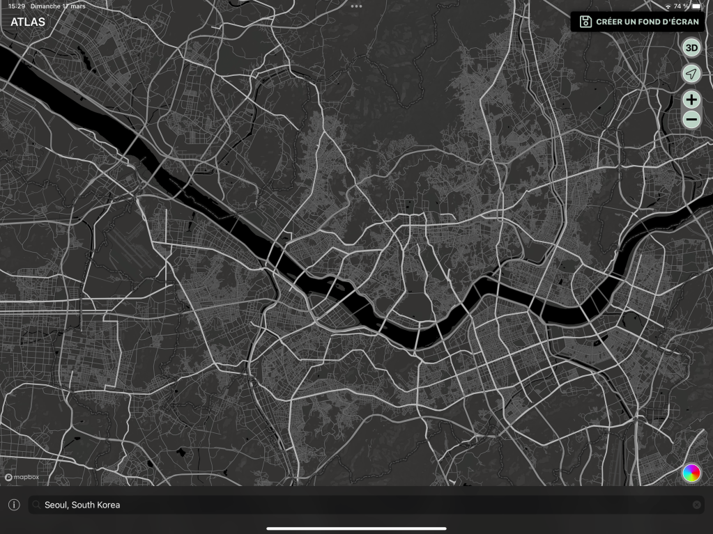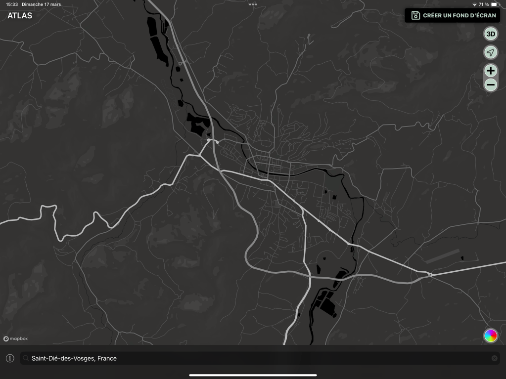 Je viens de découvrir une application qui vous permet facilement de créer un fond d’écran pour Mac / iPad et iPhone à partir de la carte de votre ville ou tout simplement d’un lieu spécifique qui vous tient à coeur.