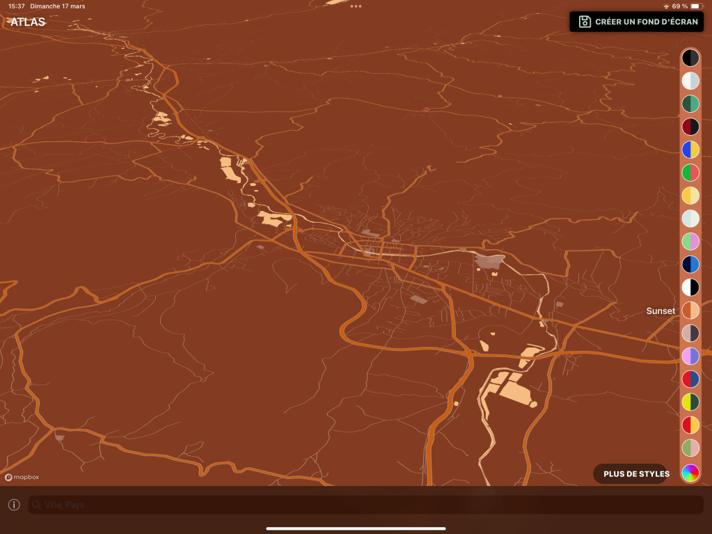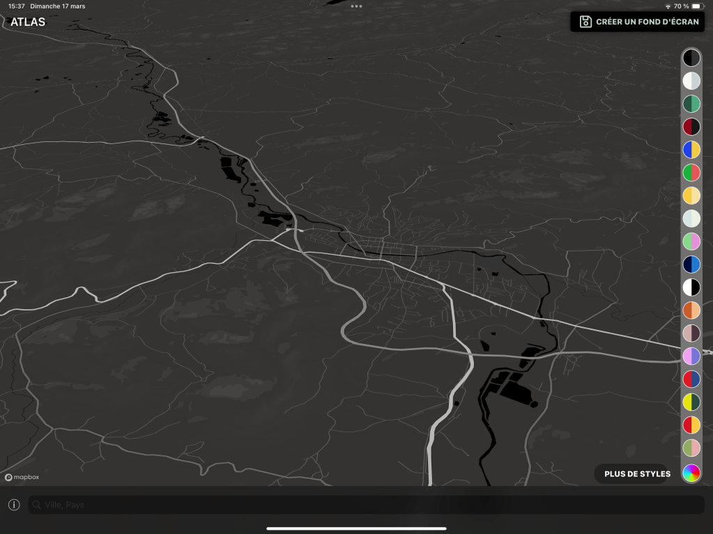 Au démarrage de l’application, les cartes seront dans des tons de gris, ce qui peut ne pas plaire à tout le monde et c’est pour cela qu’il est possible, aussi, de changer entièrement les couleurs de vos futurs fonds d’écrans.